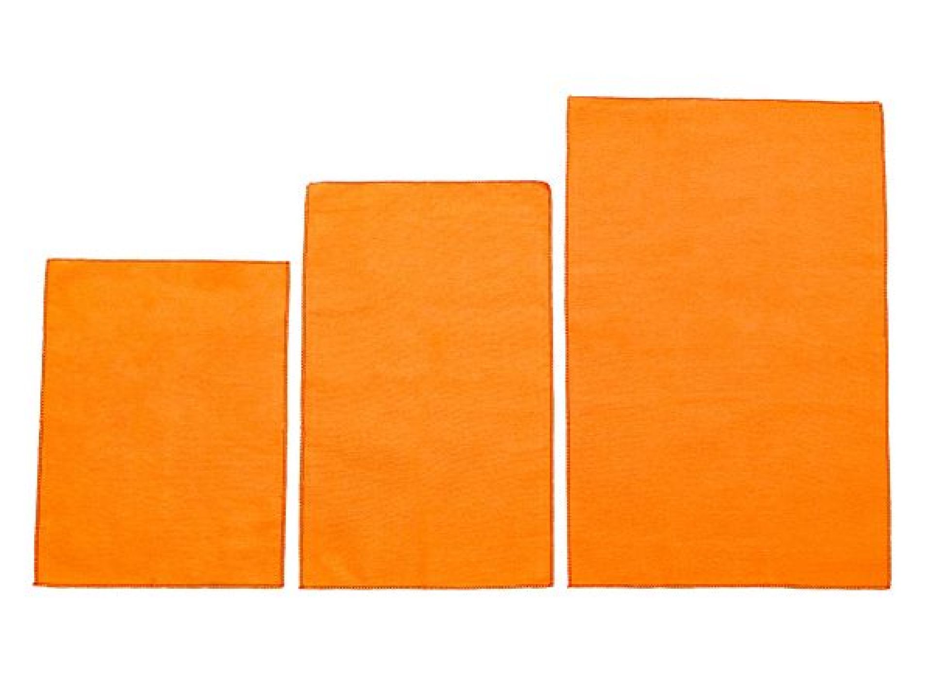 Flanela laranja 100% algodão, disponível nos tamanhos pequeno (28x38), médio (28x48) e grande (38x60). Macia, absorvente e resistente.