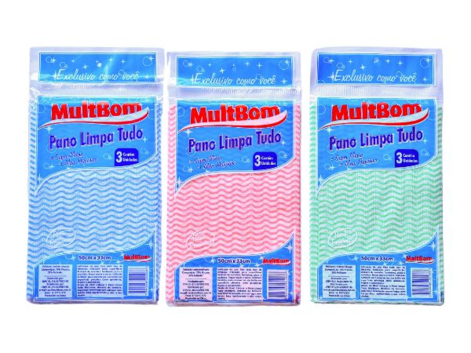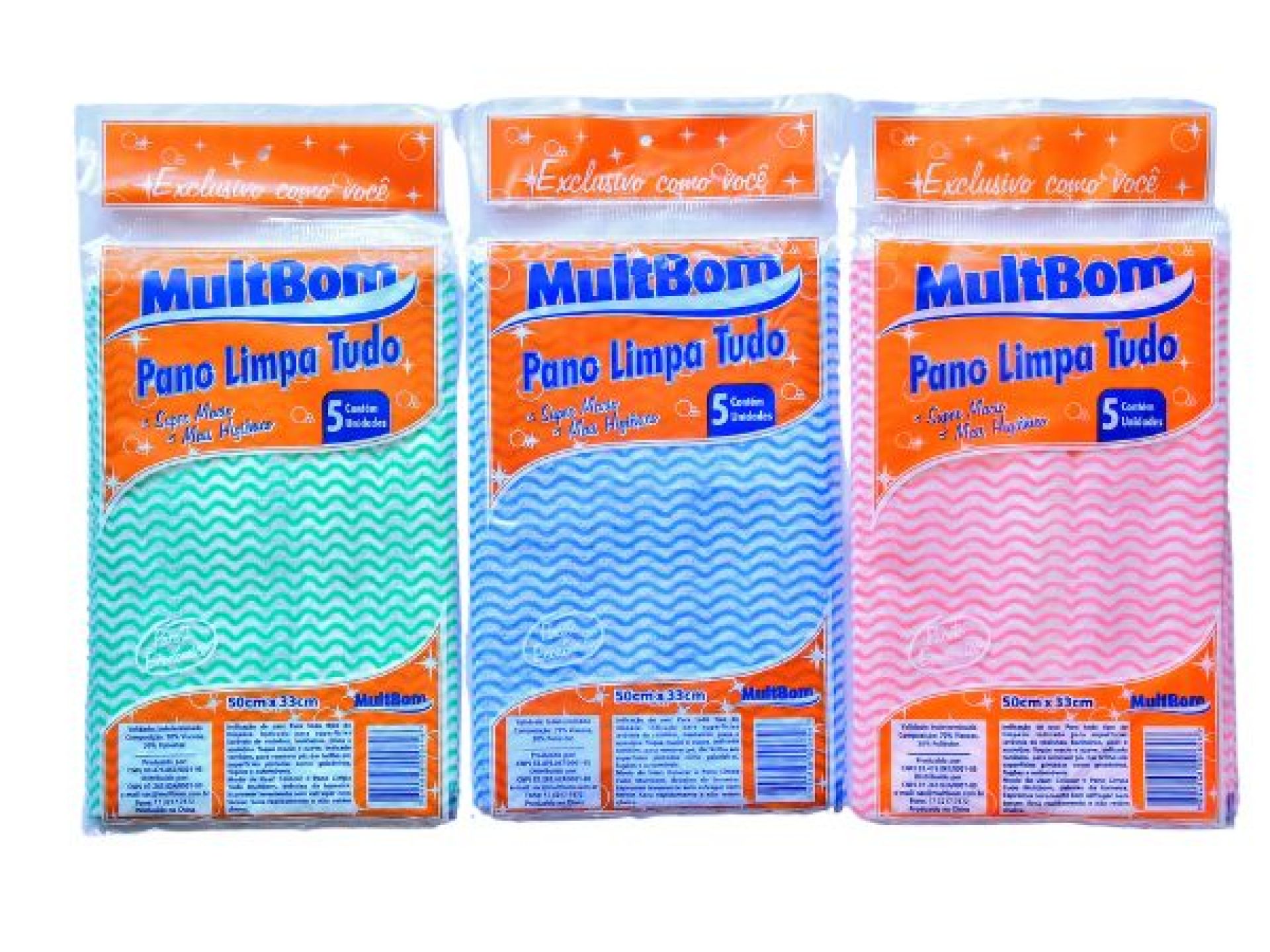 Pano multiuso ideal para limpeza doméstica. Disponível em pacotes com 3 ou 5 unidades. Praticidade, economia e eficiência no dia a dia.